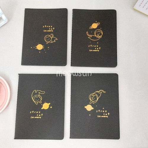 دفترچه سیاه برگ طلاکوب گربه فضانورد